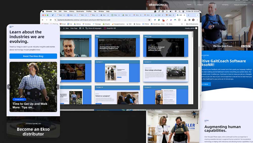 Ekso Bionics faced significant challenges with its digital presence following a costly year-long website project that failed to meet expectations. The website was slow-loading, resulting in decreased online traffic, poor search engine rankings, and subpar conversion rates. Furthermore, the website was not optimized for mobile or tablet devices, hindering user experience and accessibility. These issues were compounded by previously ineffective SEO and content creation efforts, which failed to engage their target audience of educated medical device buyers.