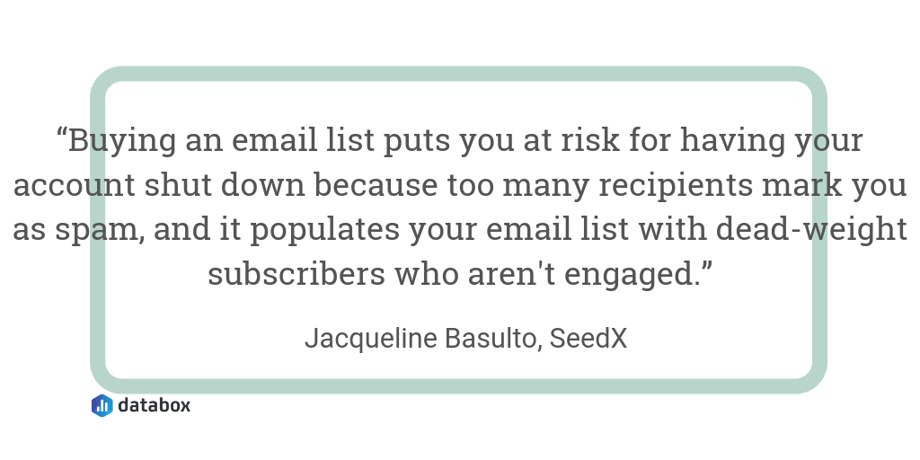 “One email marketing mistake we’ve made and seen countless people make is purchasing an email list to market to,” says Jacqueline Basulto of SeedX.
